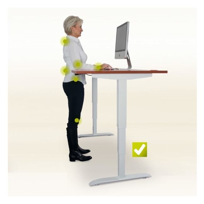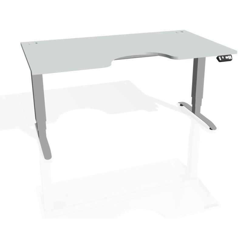 - obdĺžnik s výrezom, šírka 160 cm, hĺbka 90 cm, výška 61 až 128 cm. Pracovná doska hrúbky 25 mm s ABS hranou 2 mm. Kovové elektricky výškovo nastaviteľné nohy s dokonalou pevnosťou a stabilitou aj v najvyššej polohe a tichým plynulým chodom. Pamäťový ovládač s možnosťou uloženia 4 pozícií a zobrazenie aktuálnej výšky. Nosnosť stola až 100 kg! Priechodky v rohoch stola pre zvedenie káblov pod dosku. Káblové príchytky pod doskou pre ďalšie vedenie kabeláže.