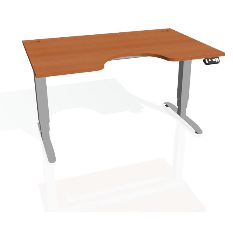- obdĺžnik s výrezom, šírka 140 cm, hĺbka 90 cm, výška 61 až 128 cm. Pracovná doska hrúbky 25 mm s ABS hranou 2 mm. Kovové elektricky výškovo nastaviteľné nohy s dokonalou pevnosťou a stabilitou aj v najvyššej polohe a tichým plynulým chodom. Pamäťový ovládač s možnosťou uloženia 4 pozícií a zobrazenie aktuálnej výšky. Nosnosť stola až 100 kg! Priechodky v rohoch stola pre zvedenie káblov pod dosku. Káblové príchytky pod doskou pre ďalšie vedenie kabeláže.