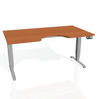 - obdĺžnik s výrezom, šírka 160 cm, hĺbka 90 cm, výška 61 až 128 cm. Pracovná doska hrúbky 25 mm s ABS hranou 2 mm. Kovové elektricky výškovo nastaviteľné nohy s dokonalou pevnosťou a stabilitou aj v najvyššej polohe a tichým plynulým chodom. Pamäťový ovládač s možnosťou uloženia 4 pozícií a zobrazenie aktuálnej výšky. Nosnosť stola až 100 kg! Priechodky v rohoch stola pre zvedenie káblov pod dosku. Káblové príchytky pod doskou pre ďalšie vedenie kabeláže.