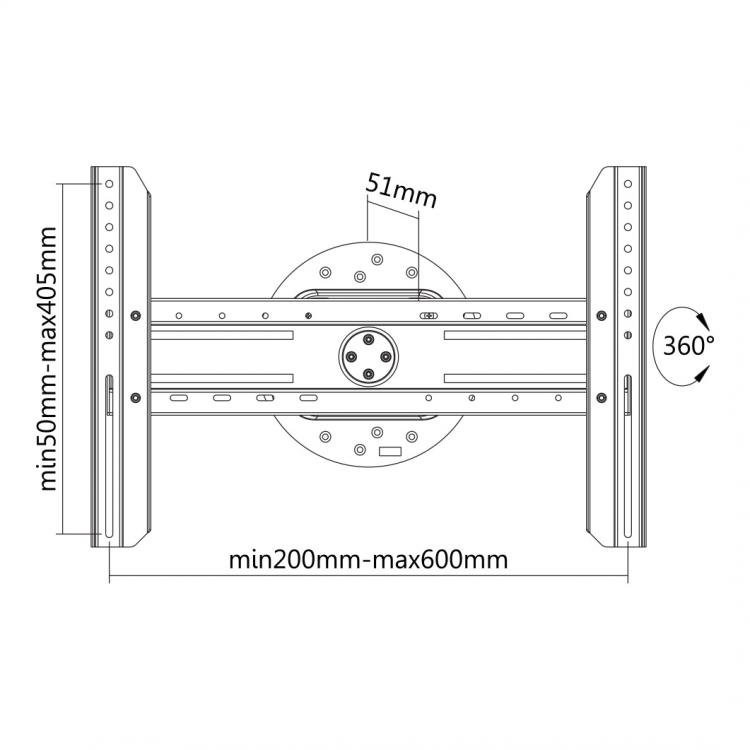- 178cm), VESA Kompatibilné rozmery: 200x200, 300x300, 400x200, 400x400, 600x400, otočenie obrazovky: 360°, profil: 51mm, materiál. Oceľ, rozmery: 51x642x440 mm