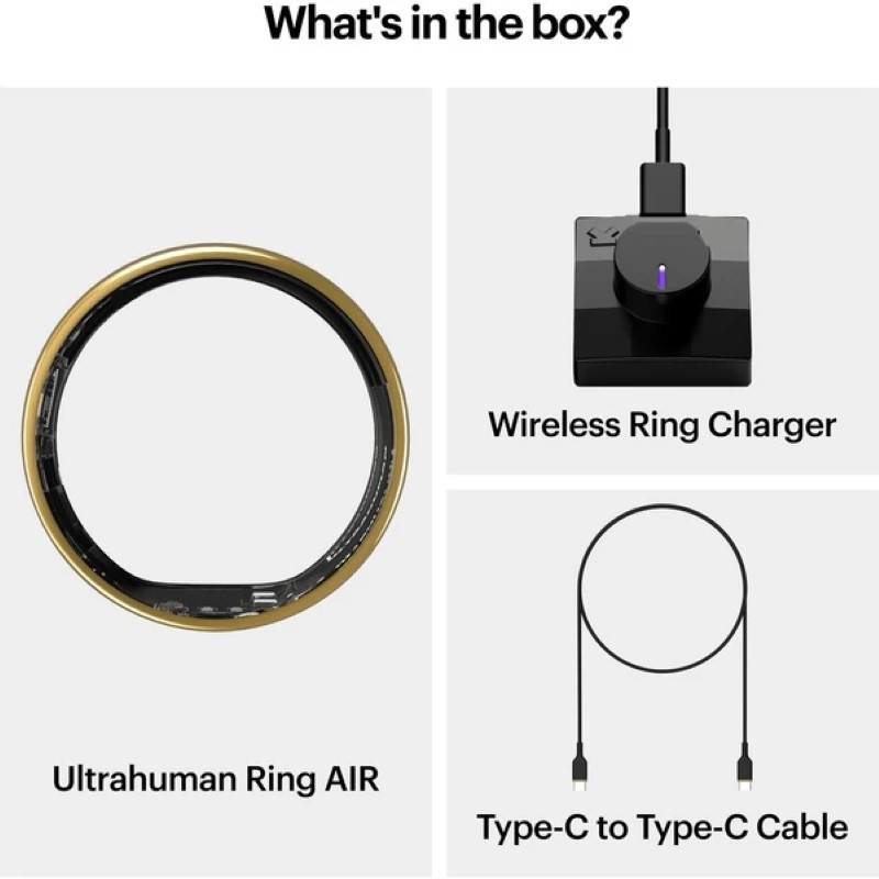Smart prsteň, Bluetooth 5.0, krokomer, senzor srdcového tepu, okysličenie krvi, spálené kalórie, spánok, teplota, stres, výdrž až 6 dní, vodotesnosť do 100 m, kompatibilná s Android/iOS. Ultrahuman Ring AIR vám poskytne ucelený a detailný prehľad o vašich aktivitách a zdraví. Je vyrobený z leteckého titánu, má výdrž až 6 dní, hypoalergénne zloženie, kompaktnú veľkosť a elegantný dizajn. Súčasťou balenia je bezdrôtová nabíjačka a kábel USB