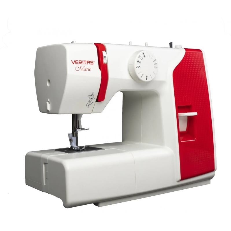 -krokovej gombíkovej dierky. Veritas 1333 Marie umožňuje prešívať aj silné materiály, disponuje vstavaným orezom nite a neoslňujúcim osvetlením. Úzke voľné rameno s odnímateľným krytom s priestorom pre uloženie príslušenstva. Automatické navíjanie spodnej cievky.